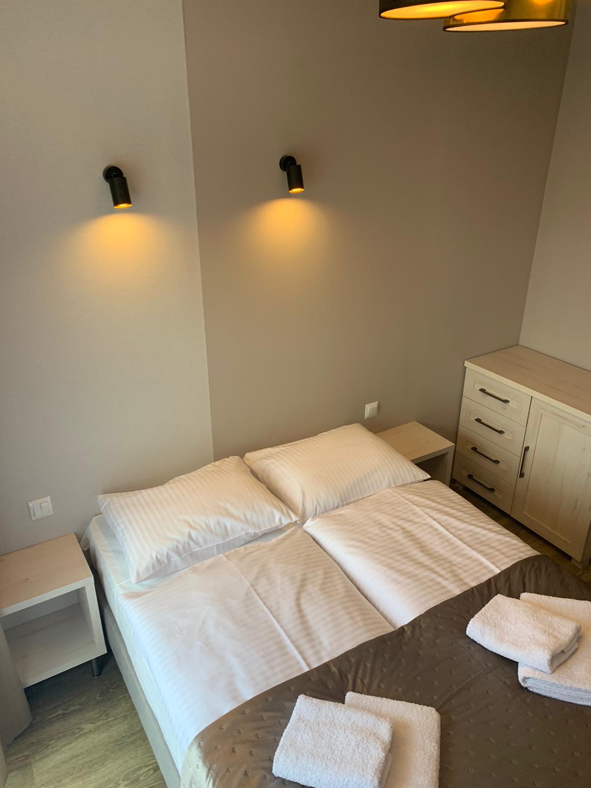 Podwójne łóżko w sypialni z wygodnym materacem ortopedycznym